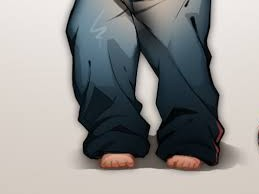 "what ? you.."you try to walk but because of long pant legs you about to tripped