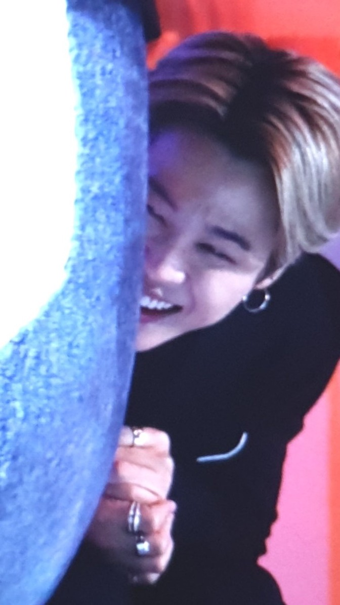 jimin quickly hide behind the pole