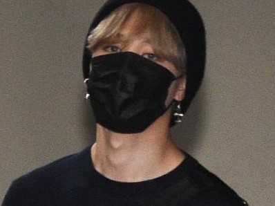 he breath heavily from his mask and stroke his hair back with hand