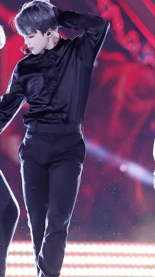 jimin goes to speaker box...with remote he turn on the music..and also change the lightning in studio