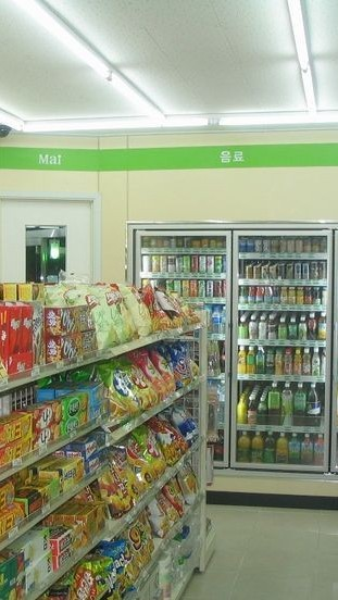 " 위생용품은 음료수 냉장고 옆에 있어요 "