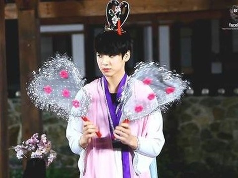 여장한 정국과 그에게 폭, 안겨있는 하나