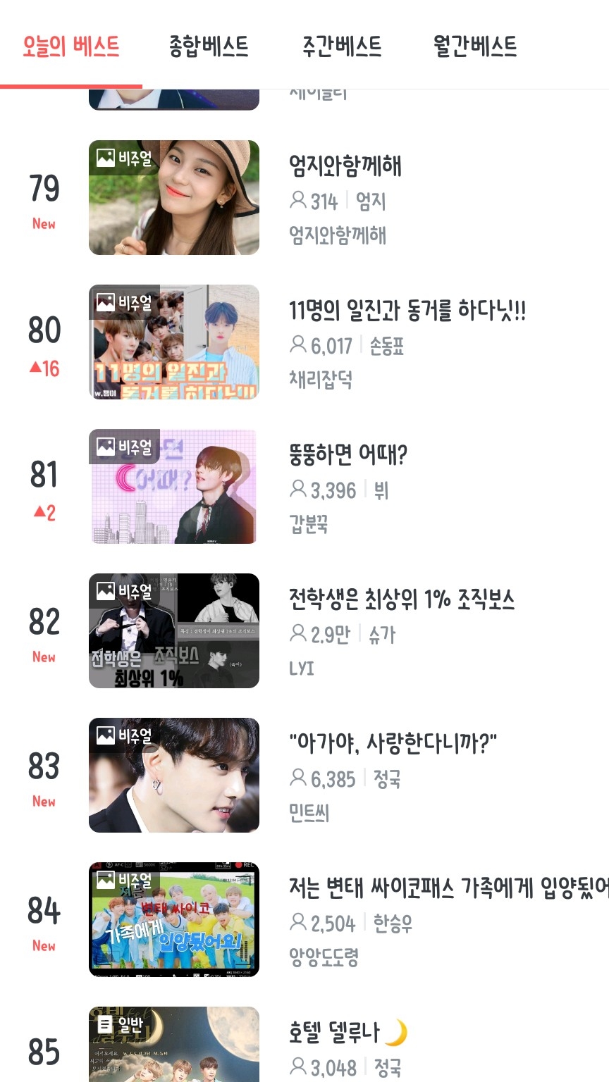 오늘의 베스트 81위에 제 팬픽이 올랐어요ㅠㅠ♥️♥️♥️