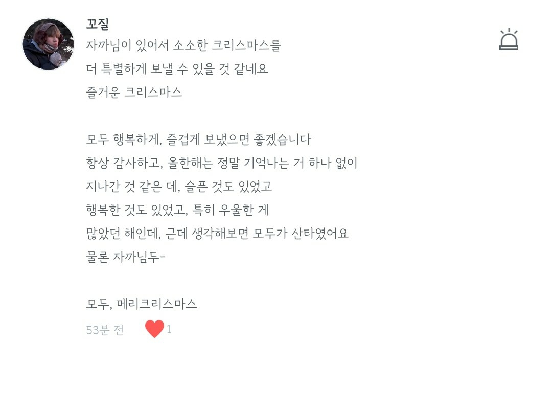 이 크리스마스가, 여러분이 행복이란 감정에 대해 더 알아갈 수 있는 시작점의 날이 되었으면 좋겠어요🙏🏻
