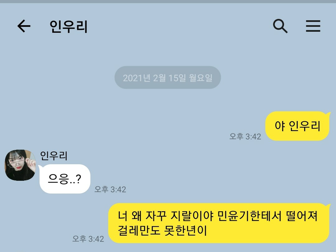 니가 발끈하는거 보면 다 보여ㅋ 그리고 난 저렇게 비열하게 카톡으로 안해 면전에다가 대놓고 이.렇.게?