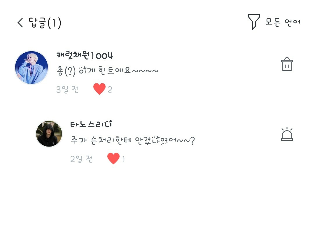 타노스리니님 문자나 댓글에 달아주세요^^