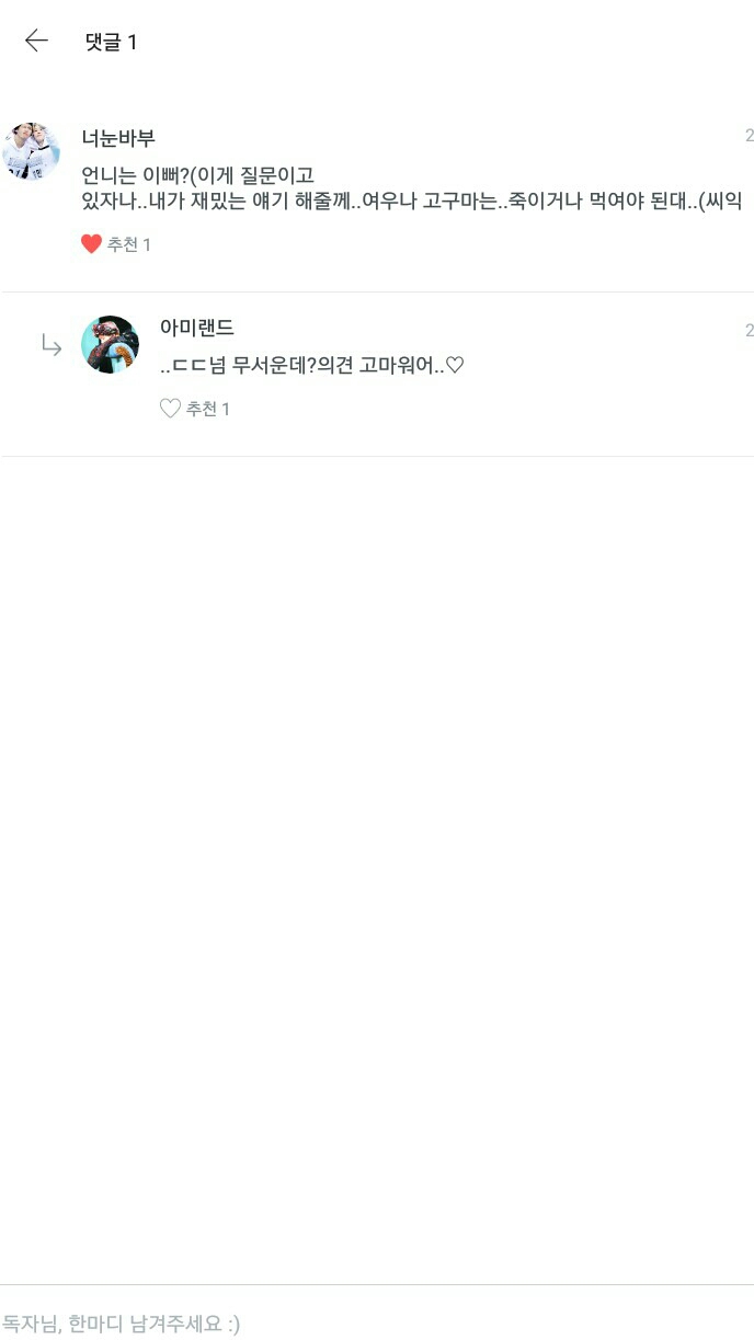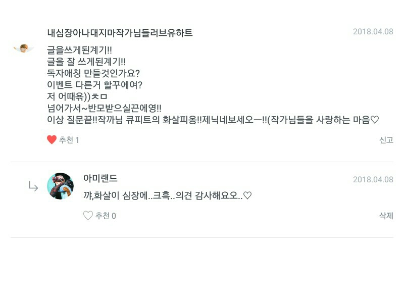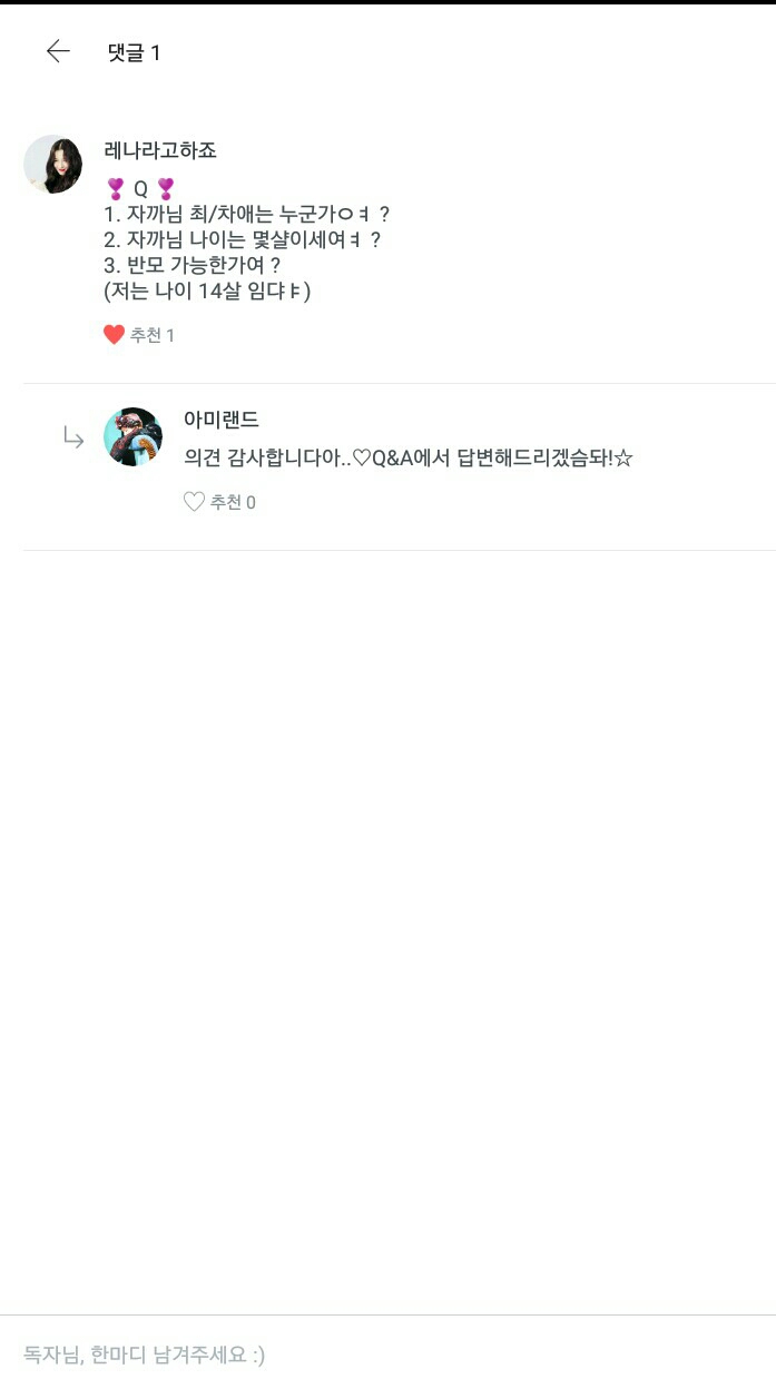 "질문해주신 독자분들께 넘나 감사드리고여(하트뿅뿅)독자애칭을 정하도록 하겠습니다!"