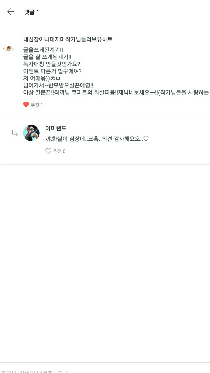 "독자애칭은 댓글로 달아주시면 뽑기앱으로 통해 결정하도록 할께요!그럼 이야기와 함께 독자애칭결과를 들고 오겠습니다!(읏차)"