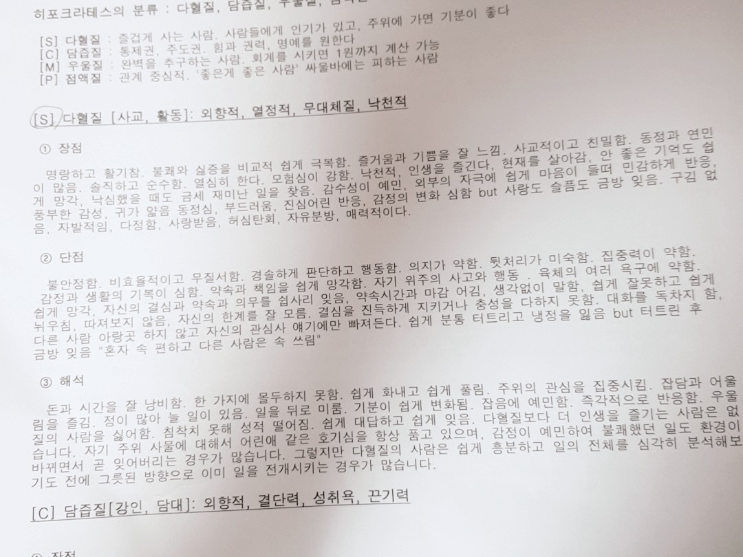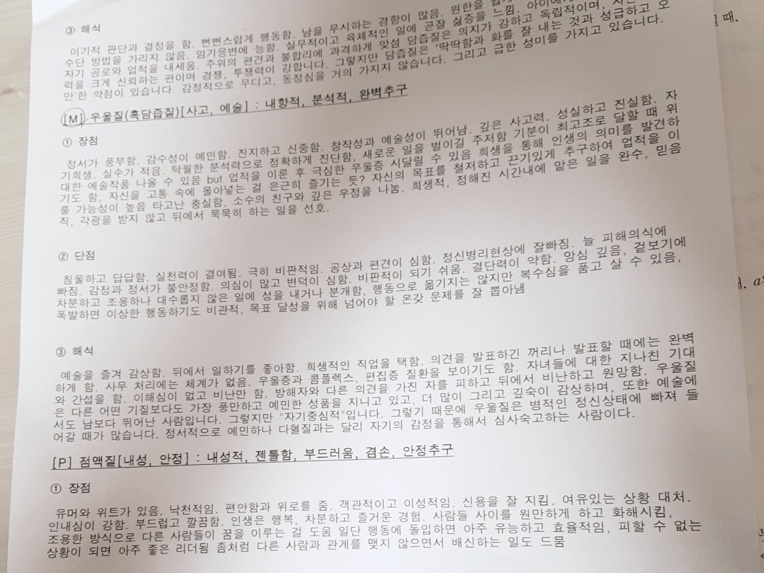다혈질이랑 우울질 나왔어여