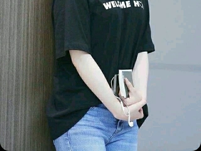 검정색 티에 청바지 , 내추럴하게 입고 나온 여주는 그 누구보다도 빛났다