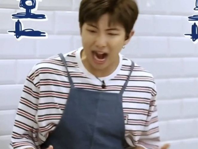RM은 y/n을 깨우기 위해 그녀의 방으로 들어간다.