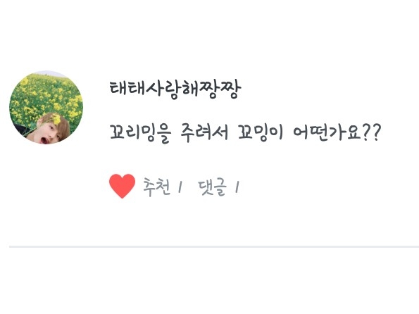 이 애칭은 태태사랑해짱짱님이 보내주셨어요 태태사랑해짱짱님 감사합니다~