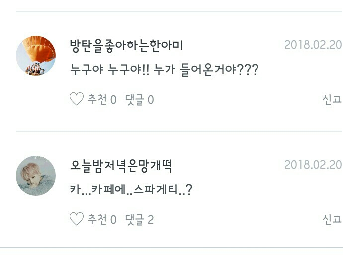 오늘도 댓글을~((흥얼흥얼