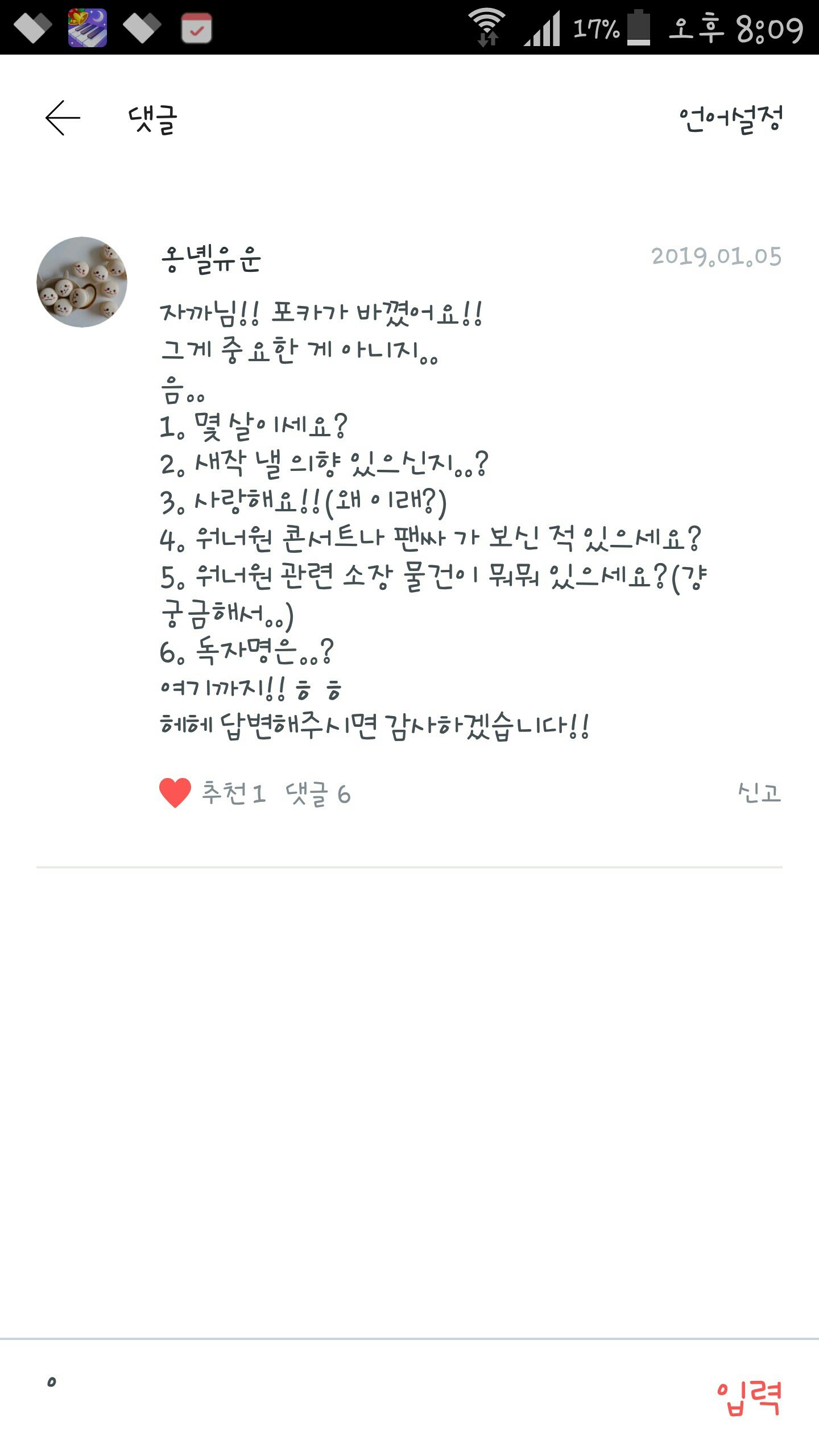 어..질문을 유운이밖에 안해줘서요...(반모에요)