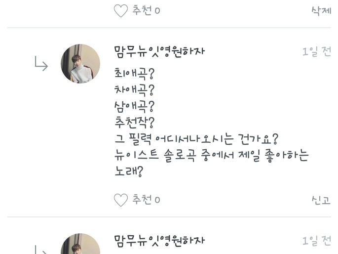 Q.뉴이스트 솔로곡 중 좋아하는 노래는?