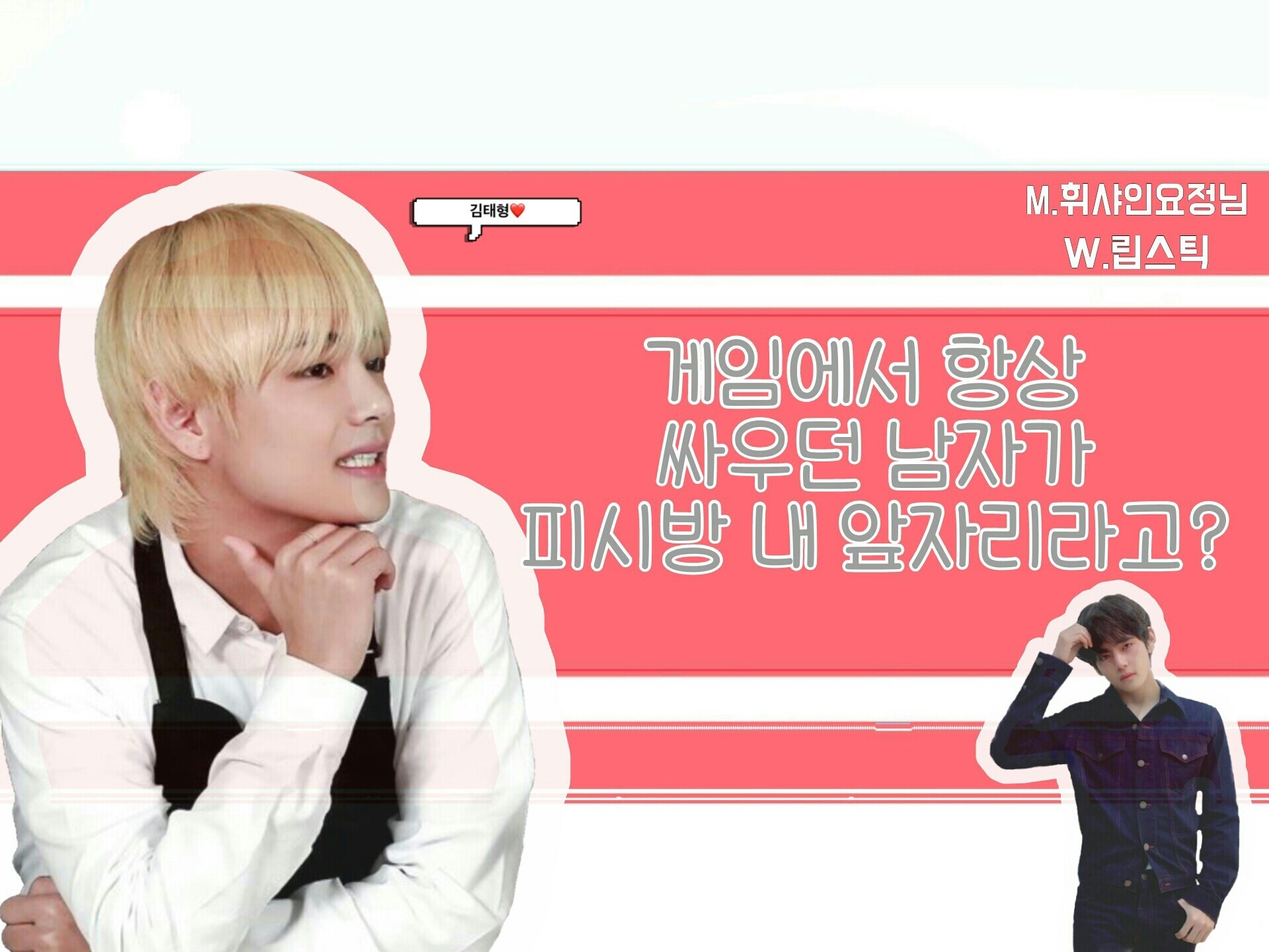 우리 순수하고 해맑은 태형씨가 뷔였다니. 충격이 채가시기도 전에 매정하게 게임은 시작되었고, 오늘따라 태형씨가 실수가 잦아 패배 위기에 처했다.