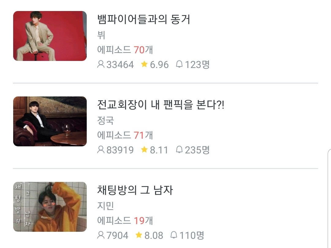 제가...진짜...뭘...잘못했나...싶기도..하고... 간신히 9점대로 올려놓은 두 작품을 다시 8점대로 내려놓은 당신들...진짜..고소하고 싶...(속마음이 나와버렸네...