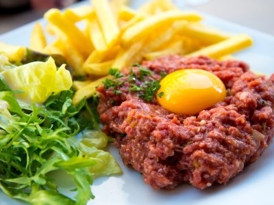 "먼저 이 요리로 말할것 같으면, 생 소고기를 곱게 다지거나 갈아 만든 프랑스 요리로 한국으로 따지면 육회? 비슷한거지. "