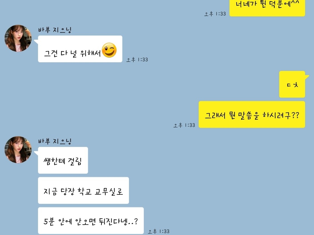 그래ㅎ 네 덕분에 교장선생님께 많이 깨졌단다?