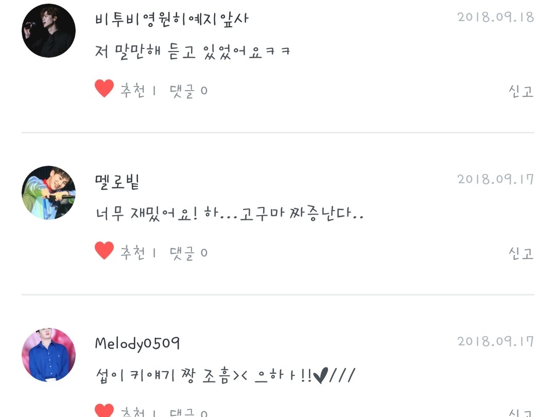 Melody0509님♡ - 으힛>< 설레는 키차이 20cm♡ 멜로빝님♡ - 고구마.. 맛있겠당~ㅋㅋ 비투비영원히예지앞사님♡ - ㅋㅋ 말만해 노래 좋져♡