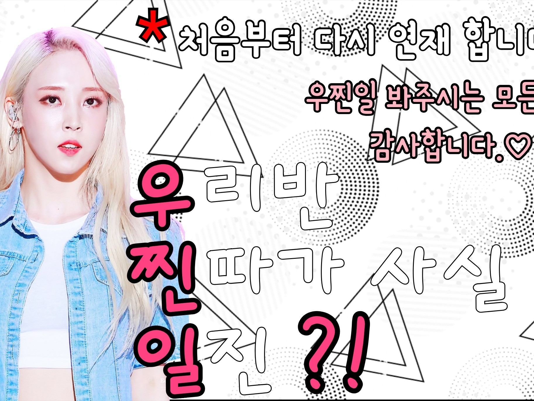 제가 우찐일을 왜 처음부터 다시쓰는건지 궁금하신 분들은 공지를 보고와주시면 좋을듯해요! 여기에 쓰긴..귀찮..크흐음...