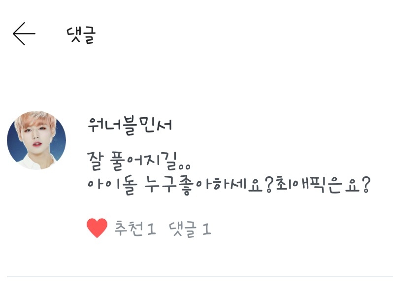 <워너블 민서>님 전 워너원과! 엑소를 좋아합니다! 최애픽은... (국프 출신이 아닌 1인) 대휘와 지훈 입니다~~