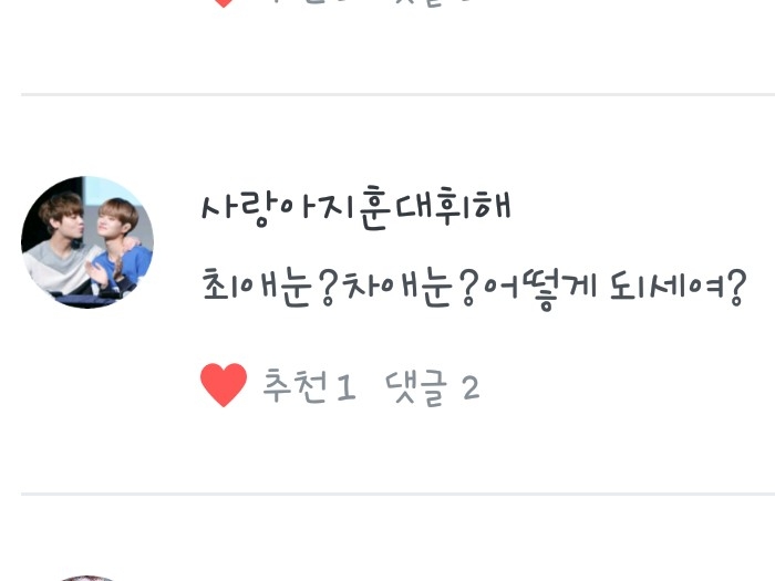 <사랑아지훈대휘해>님! 최애는! 지훈이와 대휘 입니다! 차애는! 진영이! 입니다!