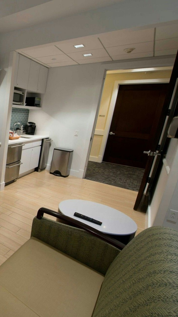 각 방에는 병원 침대, 욕실, 주방, 그리고 손님들을 위한 작은 휴식 공간이 마련되어 있었습니다.