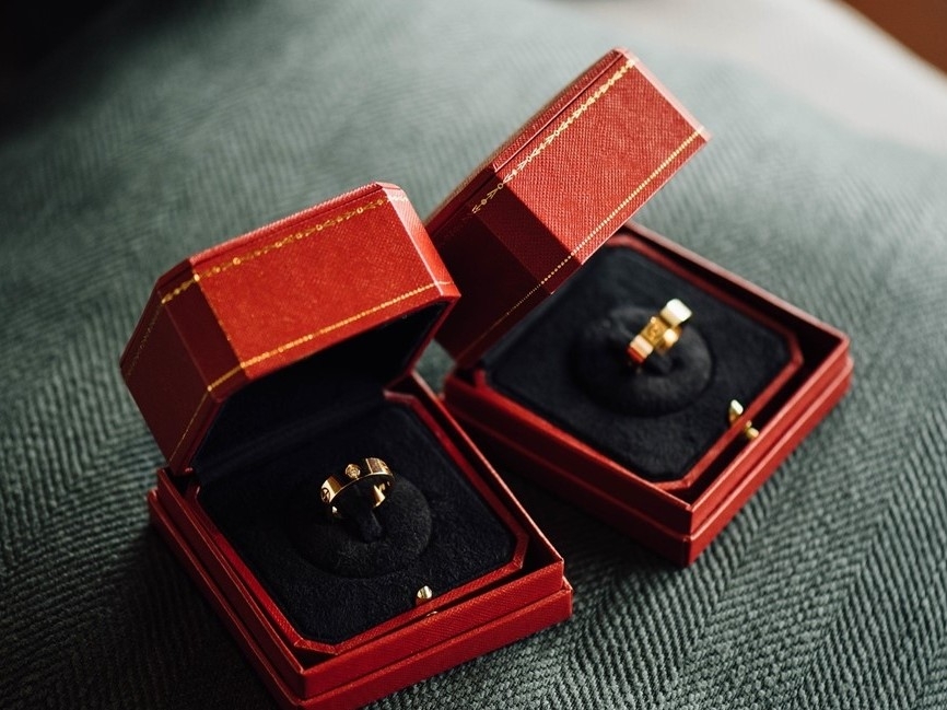 등 뒤에 반지 박스를 놓고..