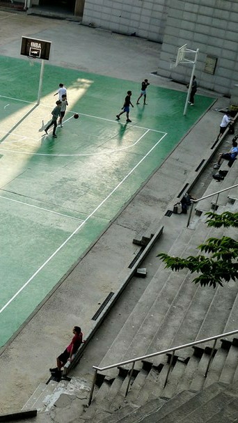 (어 아까 그 농구공 맞은 애네 어떡해 사과하지..)