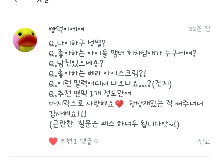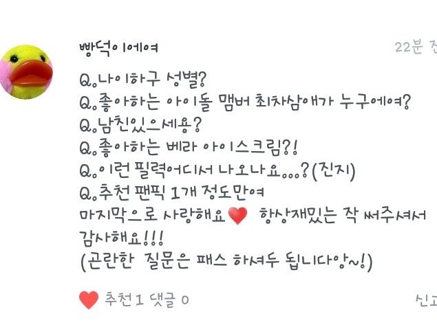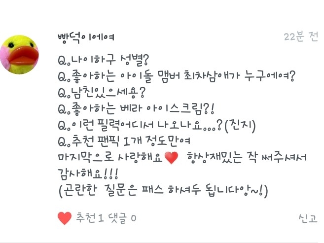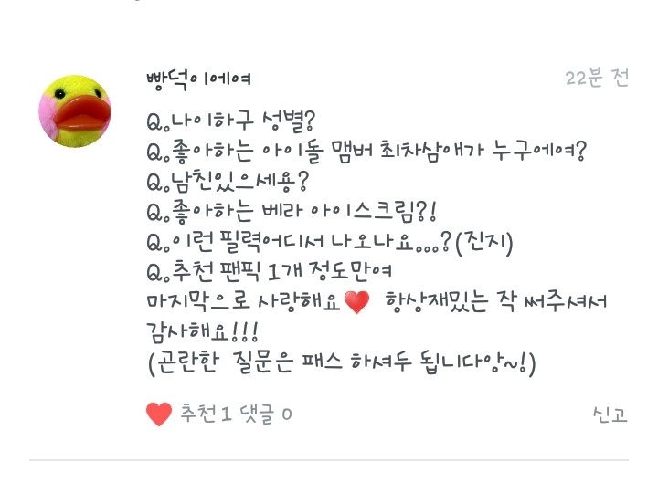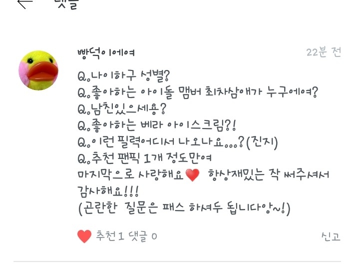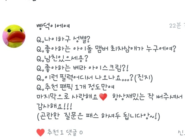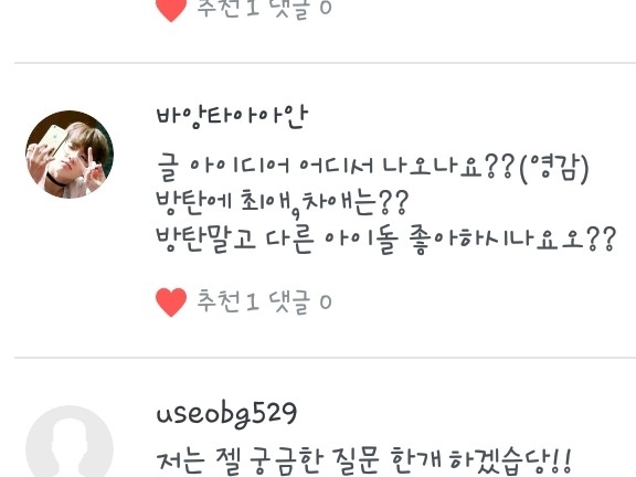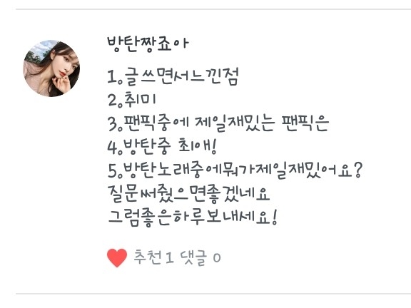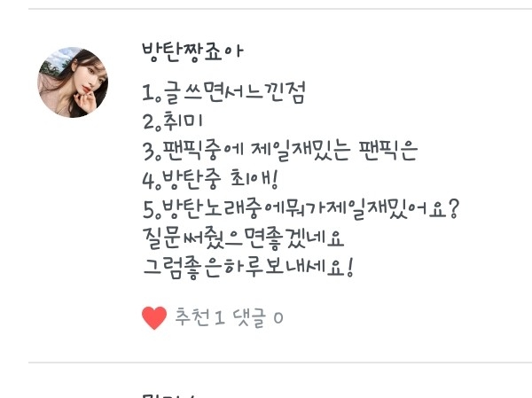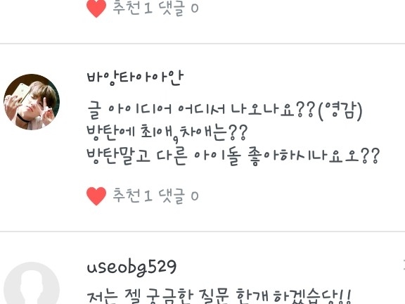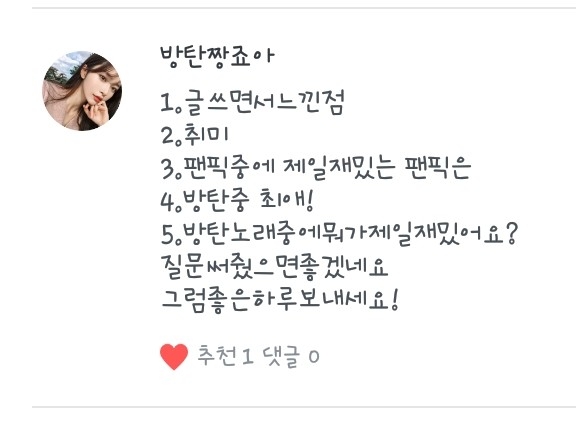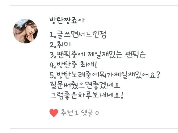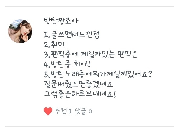 5. 넹 저는 방탄소년단과 워너원을 좋아합니당!ㅎ