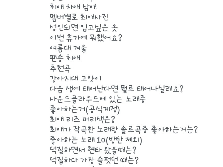 12. 최애는 윤기오빠 차애는 지민오빠 삼애는 남준오빠요!