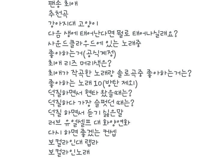 18. "so far away"(슈가)랑 "술이 문제야"(윤민민수, 장혜진)랑 "별자리" (AB6IX)랑 "블루메이즈" (하성운) 요!!