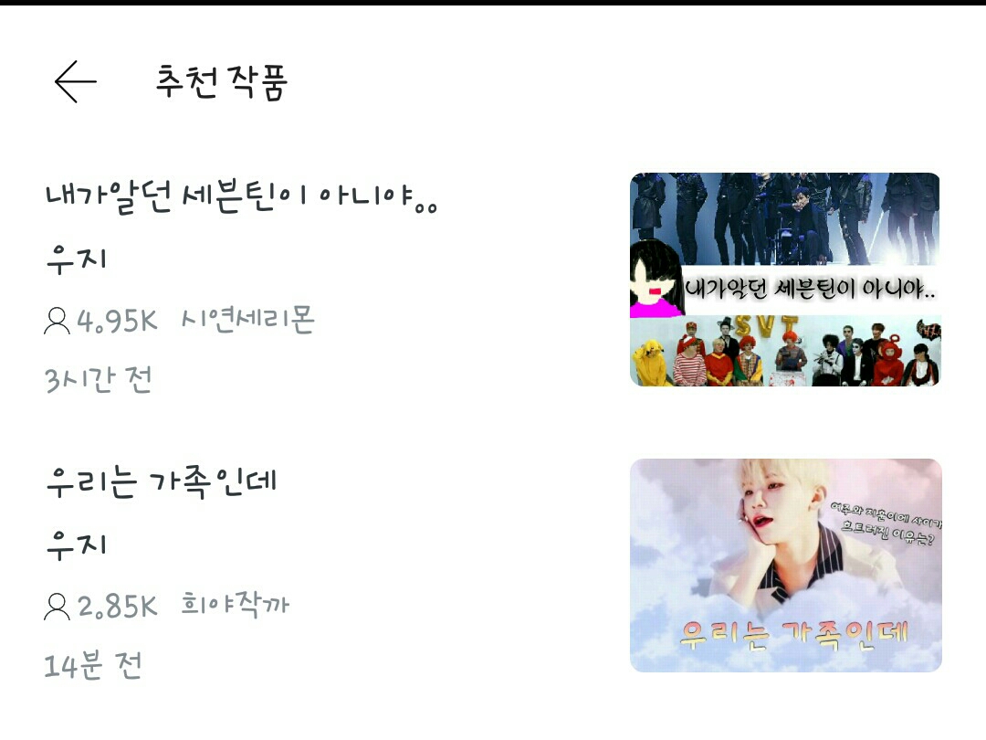 세븐틴 팬픽 추천작품에서 1위? (엥?)을 했다는건데요ㅠㅠ