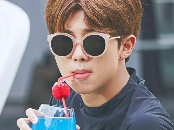 여주의 컵에 맥주를 채워주는 남준이다.