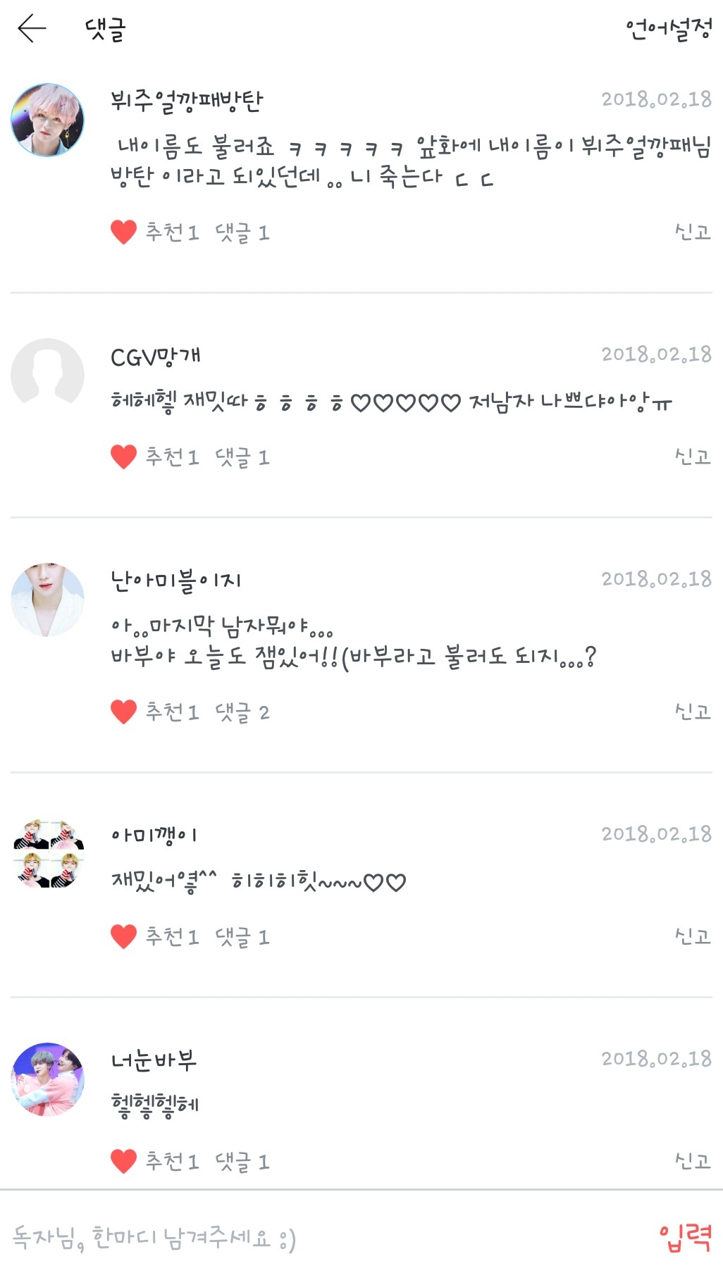 너눈바보님,아미깽이님,난 아미블이지님,CGV망개님,뷔주얼깡패 방탄....은 패스ㅋㅋㅋㅋ