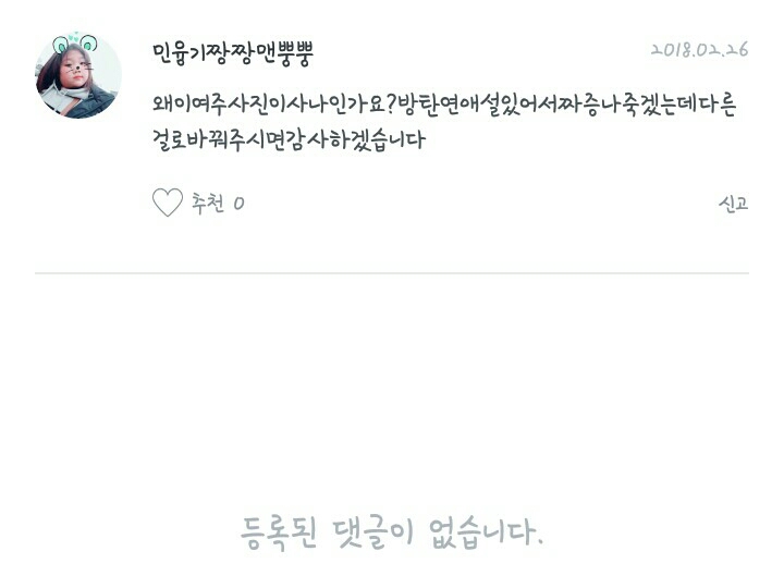 여주인공을 사나가아닌,다른사람으로하거나 사진을 없애면 그동안있돈 수토리에 지장이 갈수있고 제가 생각했던스토리에도 불편울줄수 있음니다.