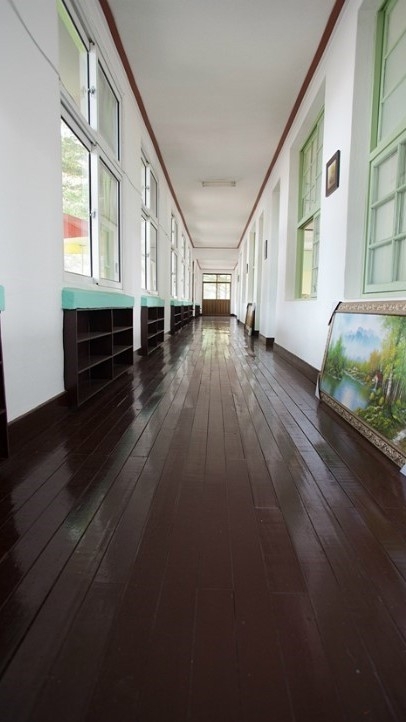 교실 뒷쪽 창문에 내리 쬔다.