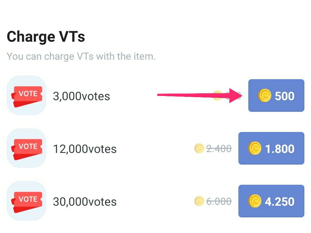 그러면 두 분 모두 500코인을 받게 되며, 이 코인으로 3000표를 구매할 수 있습니다!