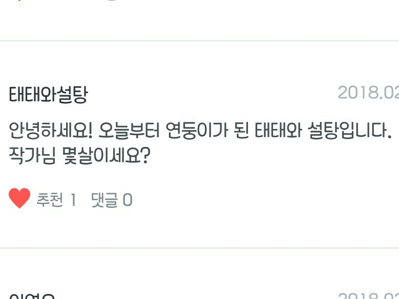 Q. 안녕하세요! 오늘부터 연둥이가 된 태태와설탕입니다.(방가워용><)작가님 몇살이세요?