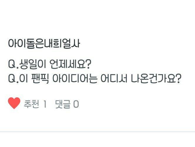 Q. 1. 생일이 언제세요? 2. 이 팬픽 아이디어는 어디서 나온건가요?