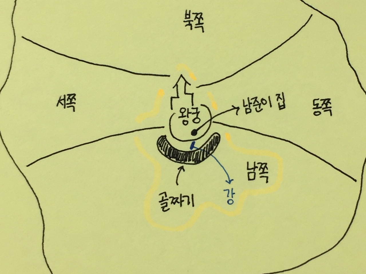 "정확하게는 남쪽으로 넘어가는 문턱이라고 할 수 있는 골짜기지. 왕궁의 강과 남쪽의 강을 이어주는 다리 역할을 하기도 하고."