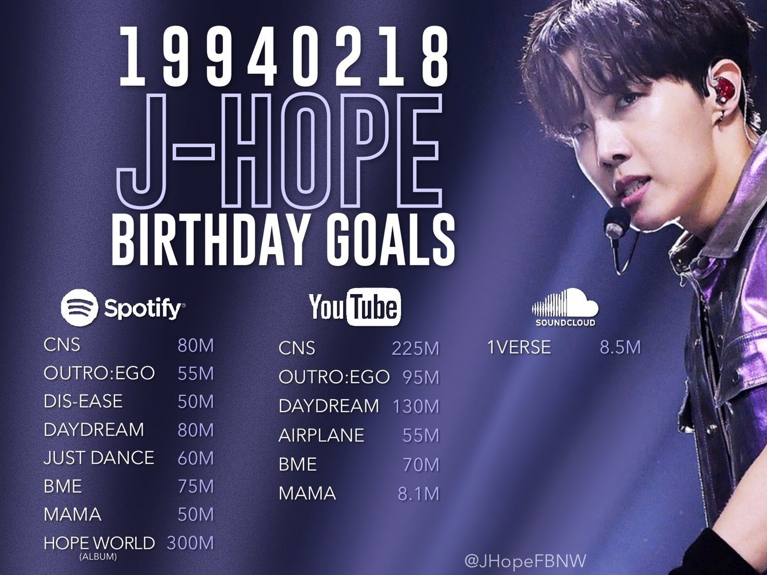 호석이 스포티파이, 사운드클라우드, 유튜브에서 이루고자 하는 목표는 다음과 같습니다 🐿️