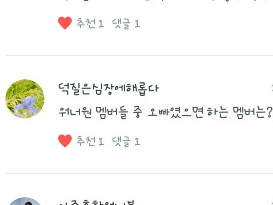 1.개인적으로 오빠라면 지성이,성운이,민현이 중 한 명이었으면 좋겠네요! 다정하고 세심하니까..ㅎ