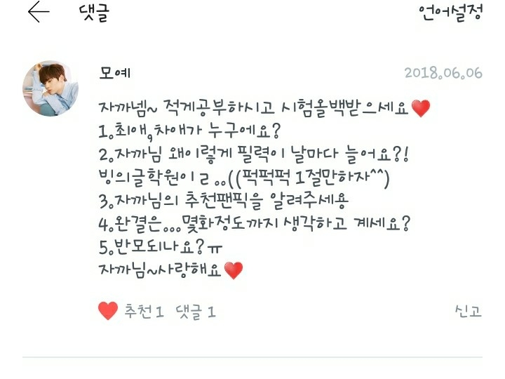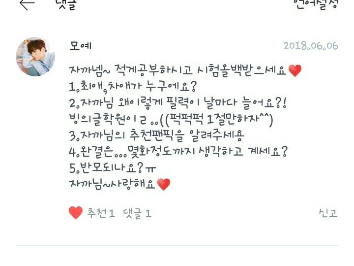 1.최애는 지성이, 차애는 성운이, 삼애는 음... 아주 고민되는데... 재환이나 지훈이나 성운이 중 한명이요! (망할 결정장애...