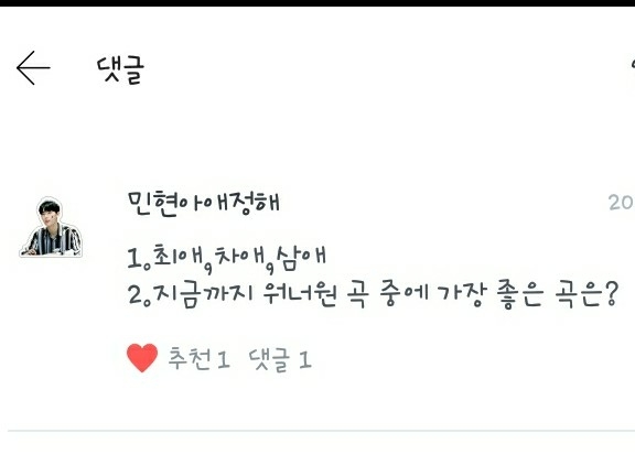 2.이번 거까지 합치면 음... 너의 이름을, 약속해요(고백버전), 그리고 켜줘랑 유닛곡 다 좋아해요!