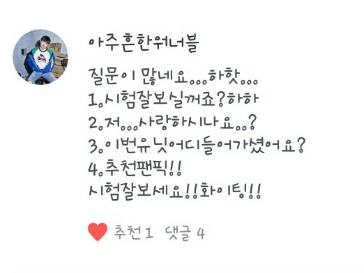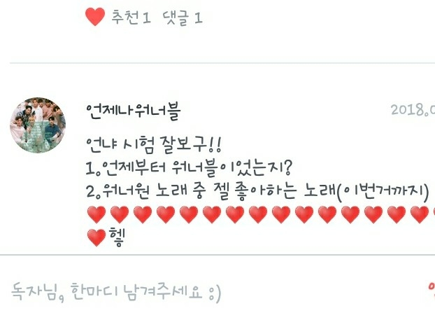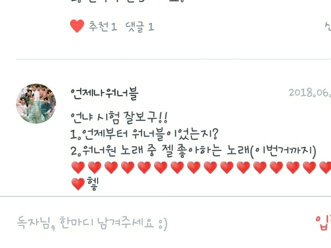 다음은 언제나워너블입니다!(시험 꼭 잘볼게ㅠ