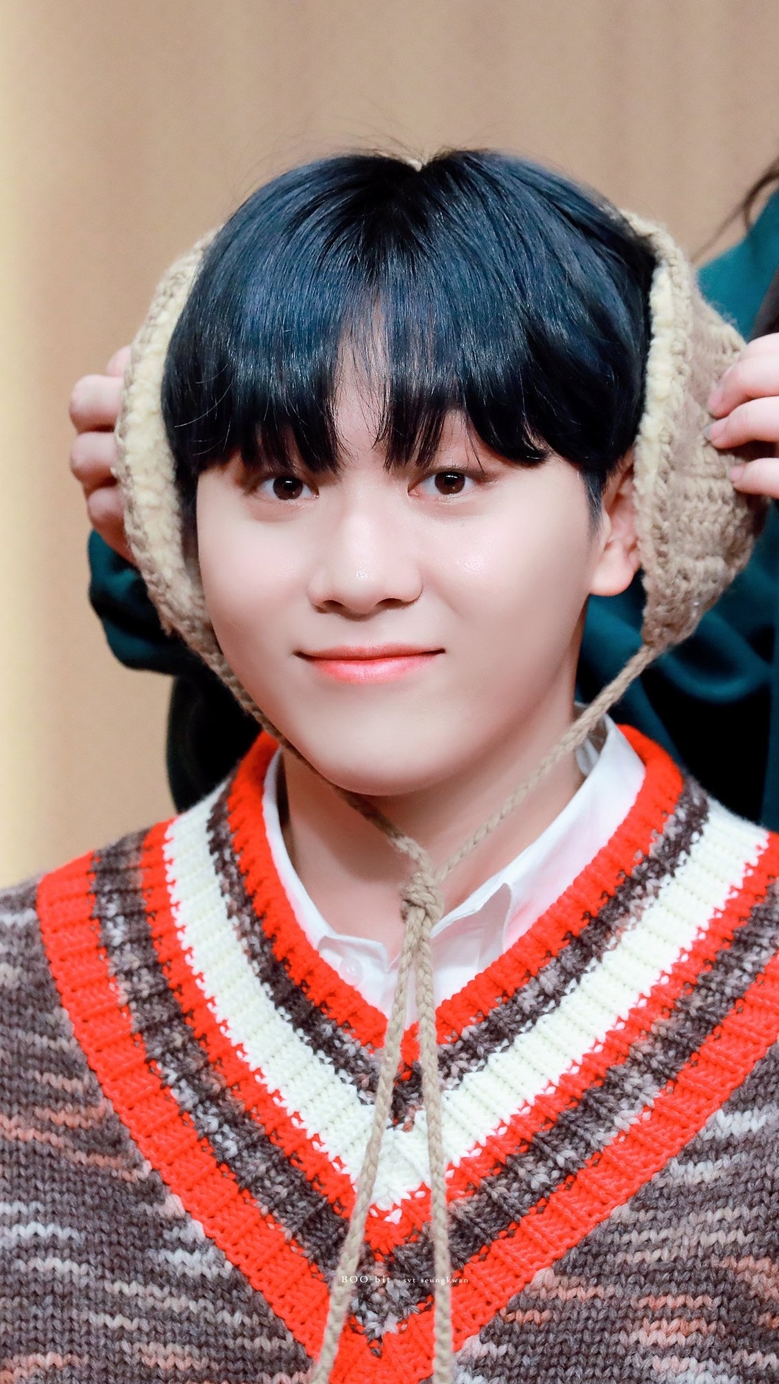 자신의 품에 안긴 나의 어깨를 잡고 살짝 밀어난 승관이는