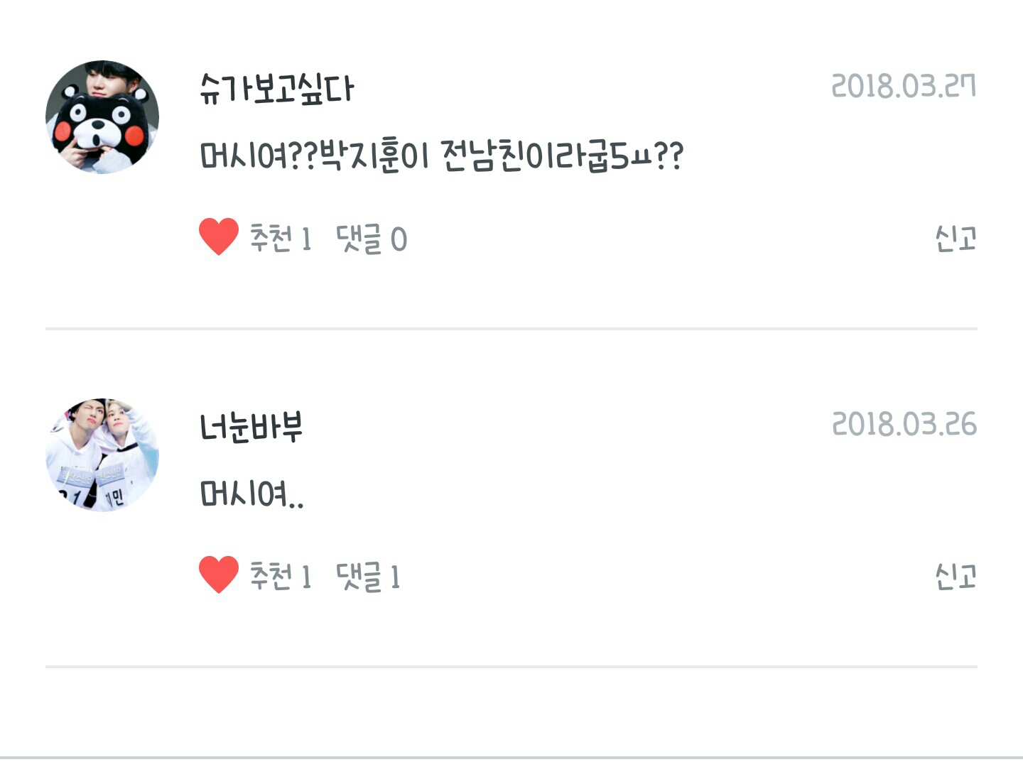 늘청이분들이 남겨주신뎃보고 기여워섴ㅋㅋㅋ