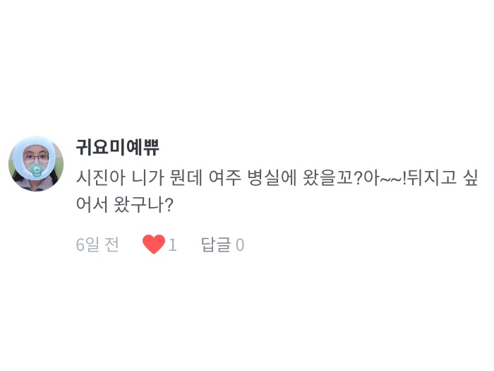 “뒤지고 싶어서 왔나봐요!!! 얼른 가서 죽이세요!”